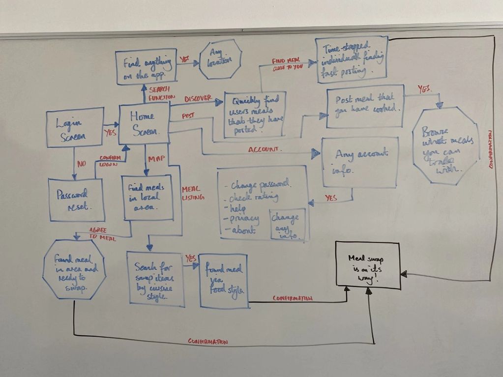 First drafts of the app were started with getting the basic functions of the screens that users would navigate. This ranged from brainstorming ideas, screen functions, wireframes and colour schemes.